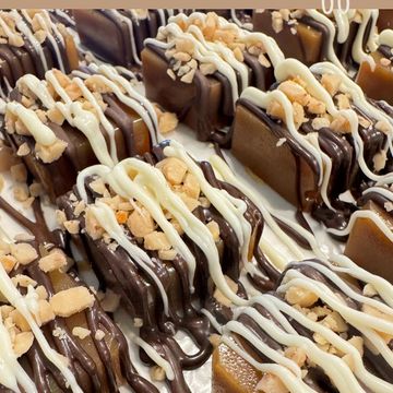 3 pieces of our Original buttery Homemade Gourmet Caramel Bite topped with chocolate and toffee bits(contains nuts)