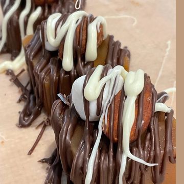 3 pieces of our Original buttery Homemade Gourmet Caramel Bite topped with chocolate drizzle, almond, marshmallow